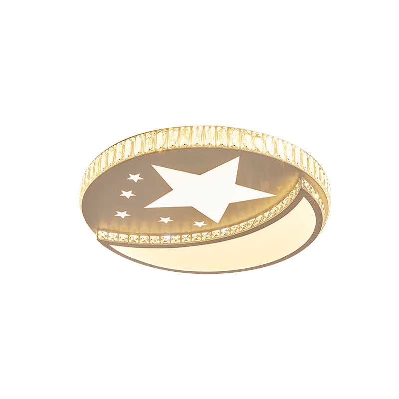 Plafonnier LED contemporain en cristal étoile et lune en blanc - Éclairage encastré pour chambre à coucher