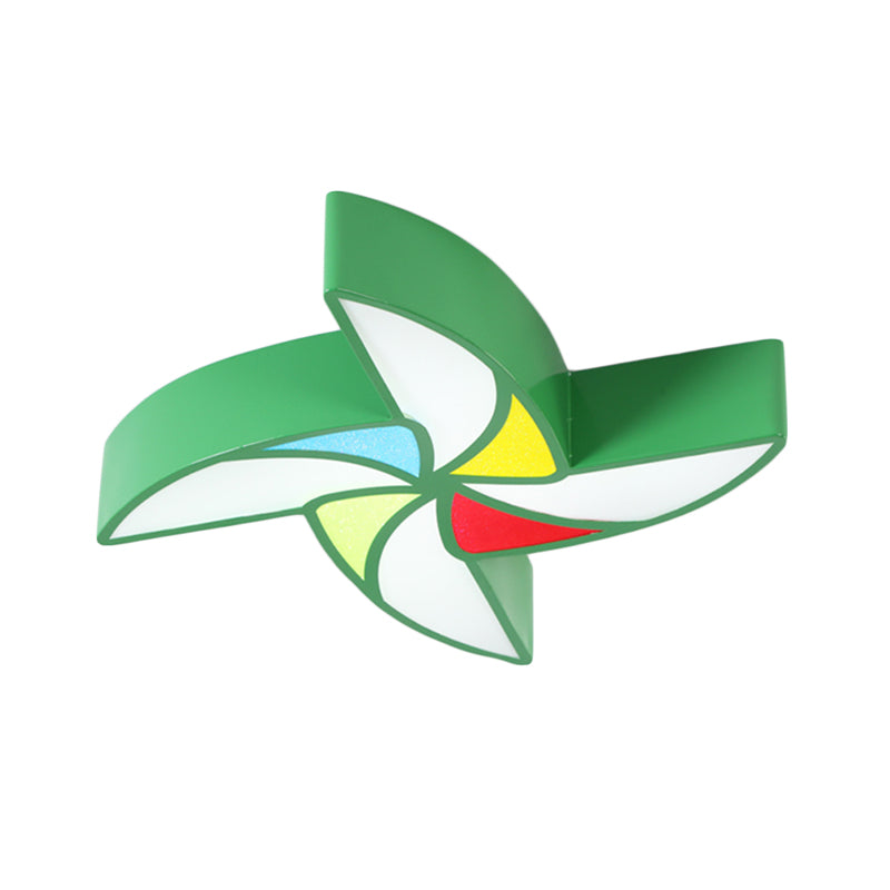 Modern Led Flush Mount Ceiling Light For Child’s Bedroom - Toy Windmill Design Green