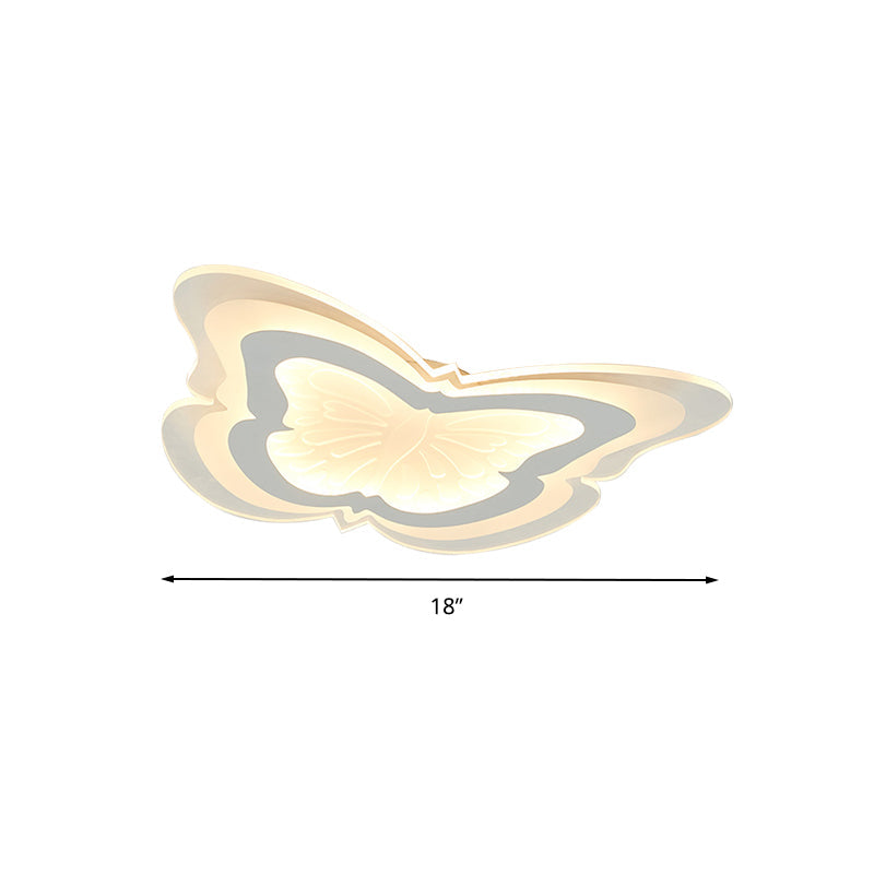 Butterfly Led Ceiling Light For Kindergarten Hallway - White Insect-Themed Acrylic Flush Mount /