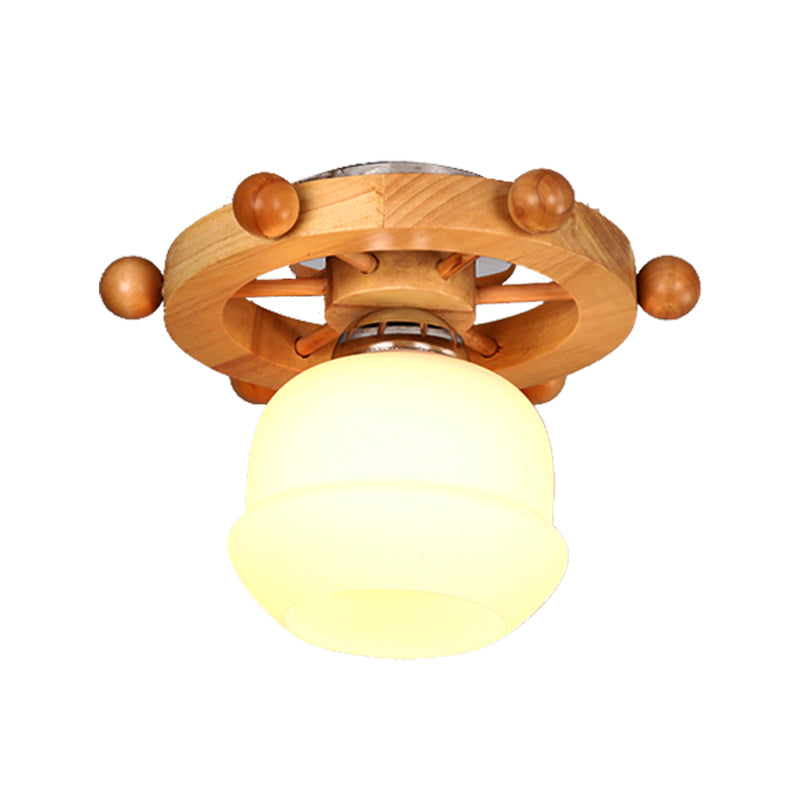 Nordic 1-Light White Glass Flushmount Ceiling Light With Wheel Backplate - Ideal For Bathrooms