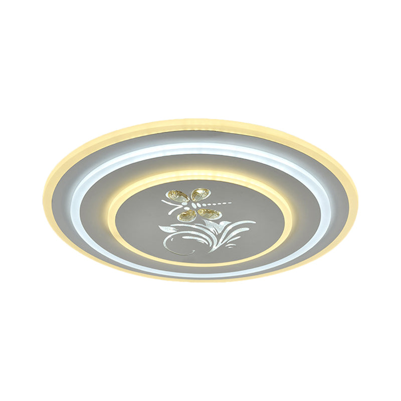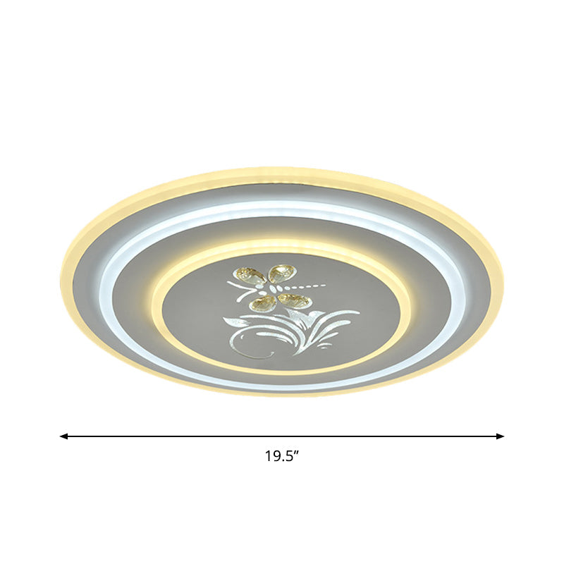 Modern Crystal Led Ceiling Lamp – White Flush Mount For Dining Room / Round