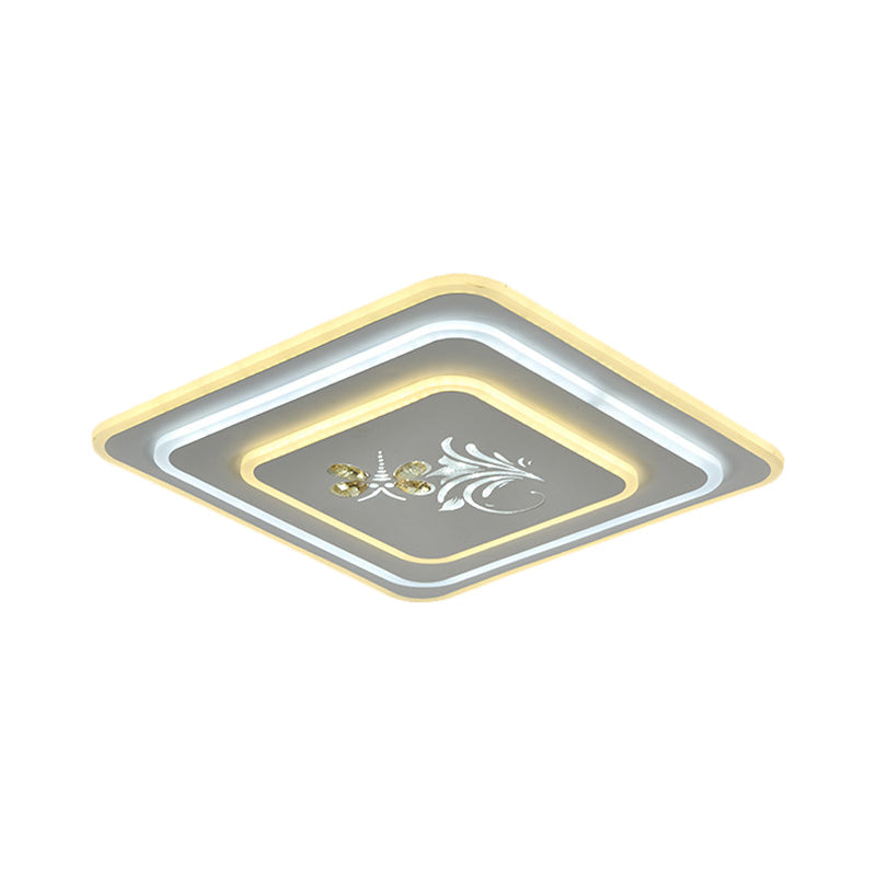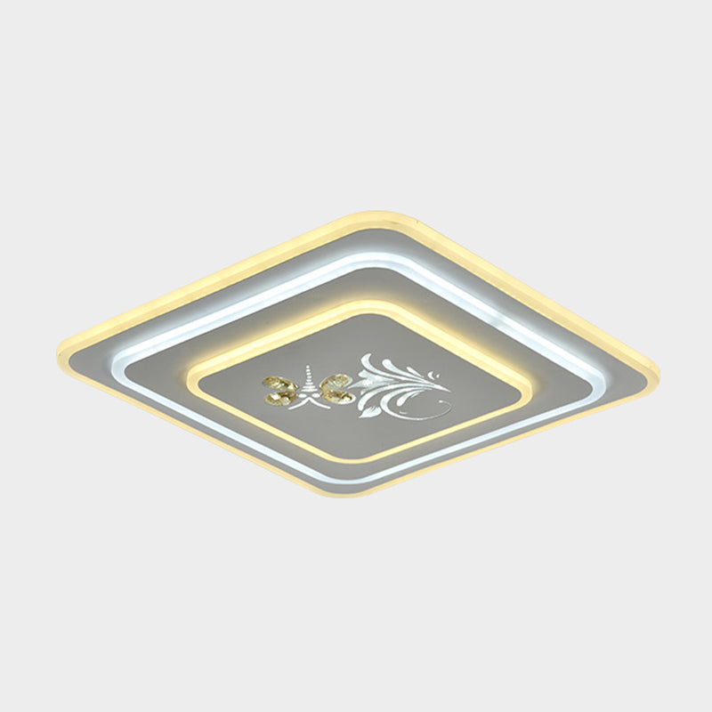 Modern Crystal Led Ceiling Lamp – White Flush Mount For Dining Room / Square Plate