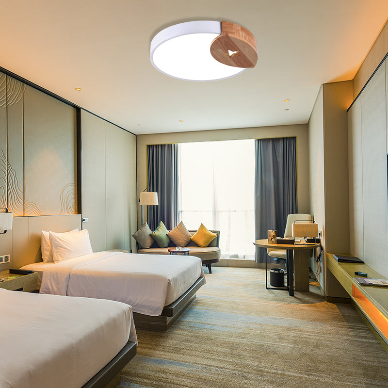 Plafonnier LED rond en acrylique avec protection en bois - 9"/12"/20" de diamètre, lumière chaude/blanche