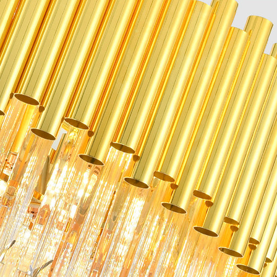 Vintage Brass Metal Chandelier With Crystal Block Round Shade Pendant Lamp - Multi-Light