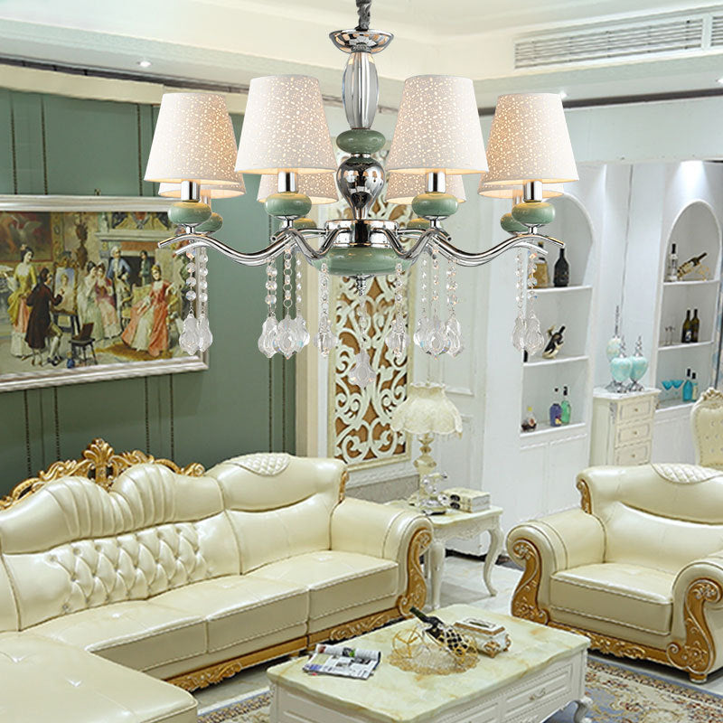 Green Nordic Cone Pendant Lamp With Crystal Drop - 8 Lights Chandelier For Bedroom