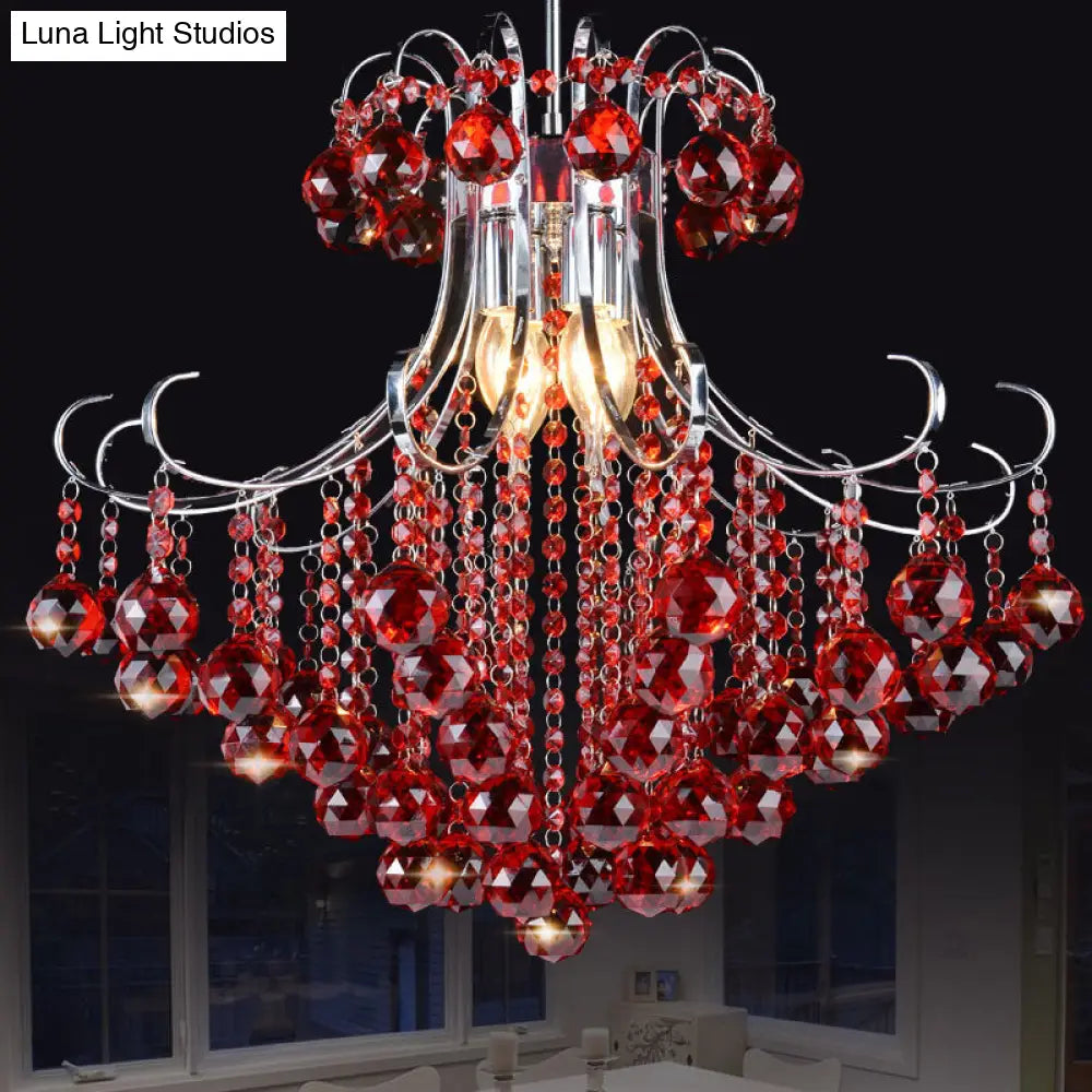 Lustre boule de cristal violet/rouge goutte de pluie traditionaliste avec éclairage chromé vers le bas - Ensemble de 3 ampoules