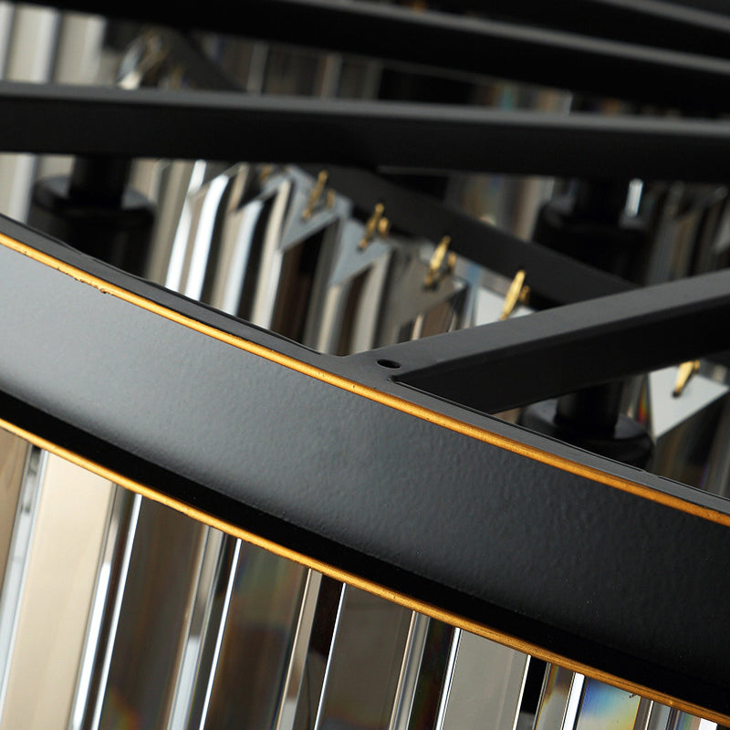 Lustre à tambour noir moderne avec suspension à abat-jour en cristal - 6/12 lumières pour le salon