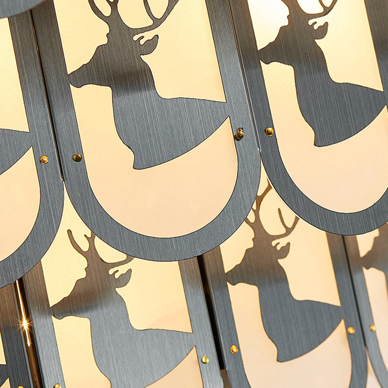 Lustre moderne à plusieurs niveaux en cristal avec motif d'élan - 12/16 lumières, finition nickel