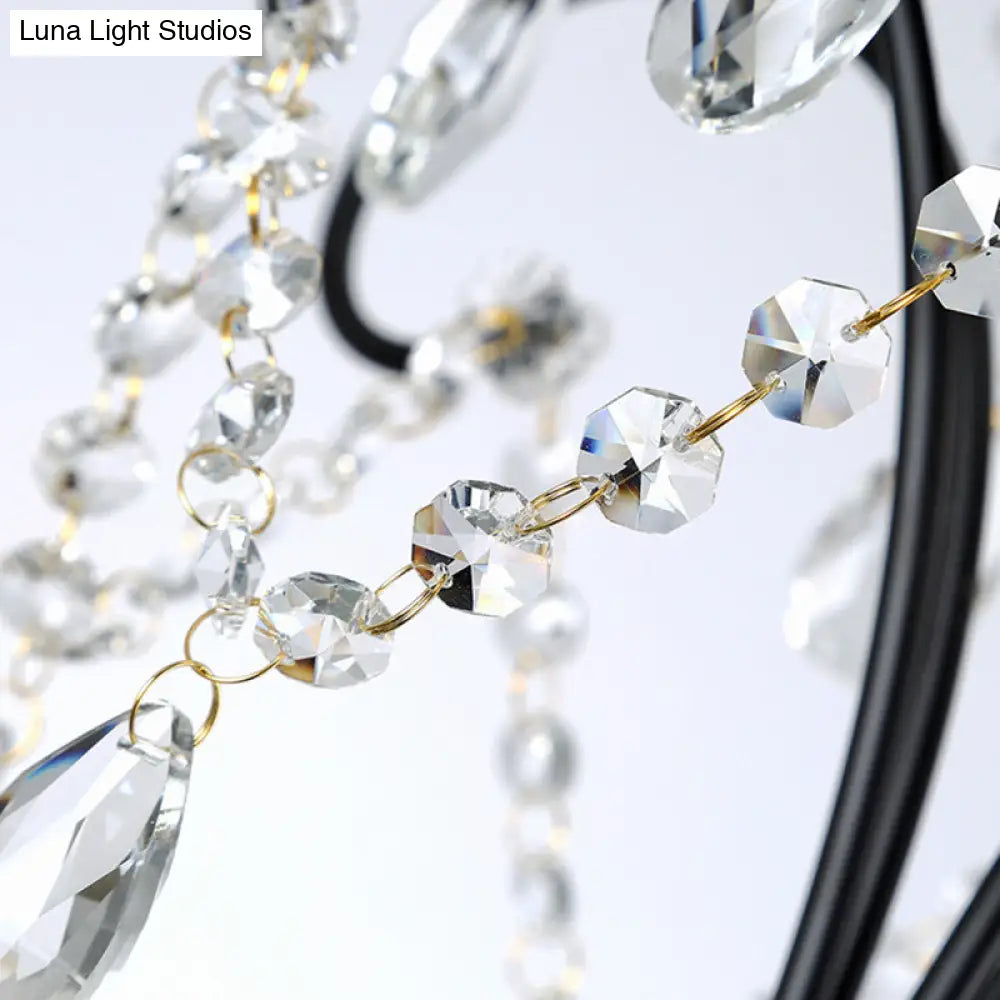 Suspension en fer antique avec bras incurvé noir et accent en cristal - Plafonnier à 1 lampe