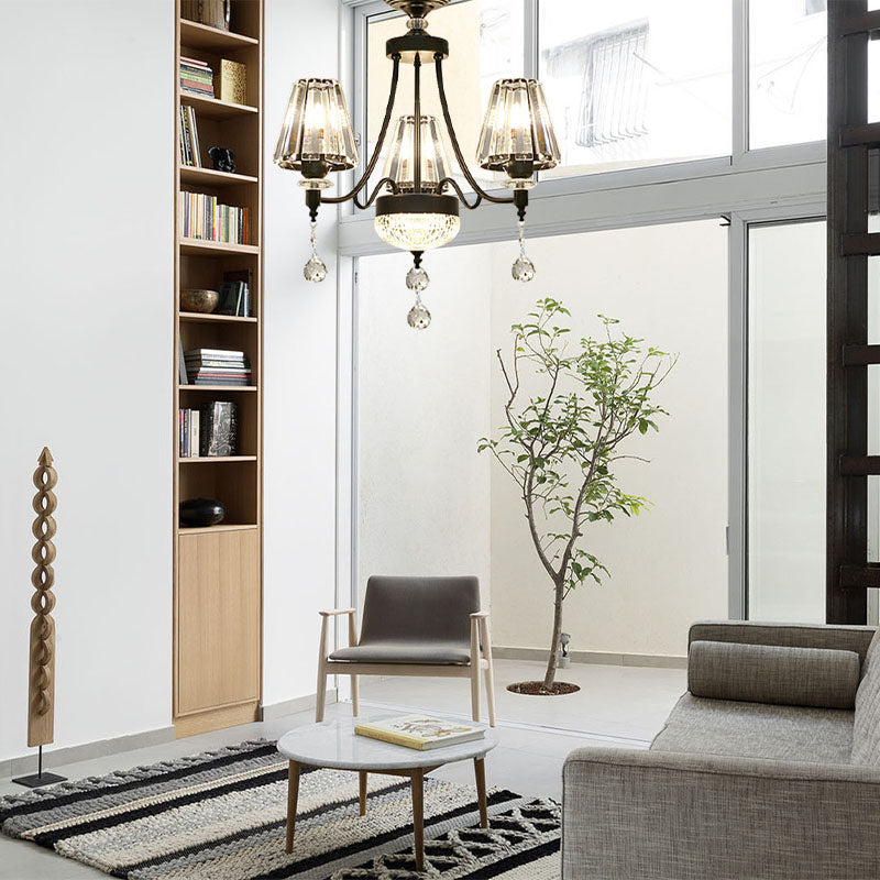 Modern Crystal Ceiling Chandelier With Tapered Design - Black Pendant Light Kit (3/6/8 Heads