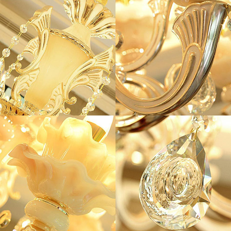 Classic White Faux Candle Chandelier For Living Room With Frosted Glass Pendant And Crystal Décor 8