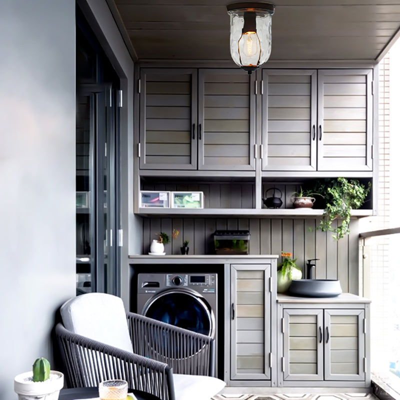 Industrial Black Clear Glass Ceiling Mount Light Fixture For Dining Room - 6/8 Wide
