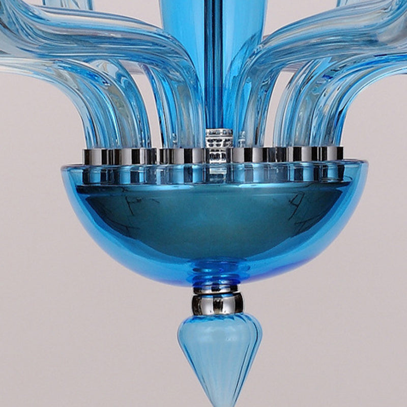 Tradition Starburst Glass Chandelier - 12 Bulbs White/Red/Blue With Cone Fabric Shade Blue