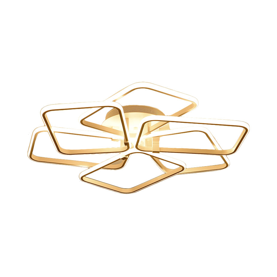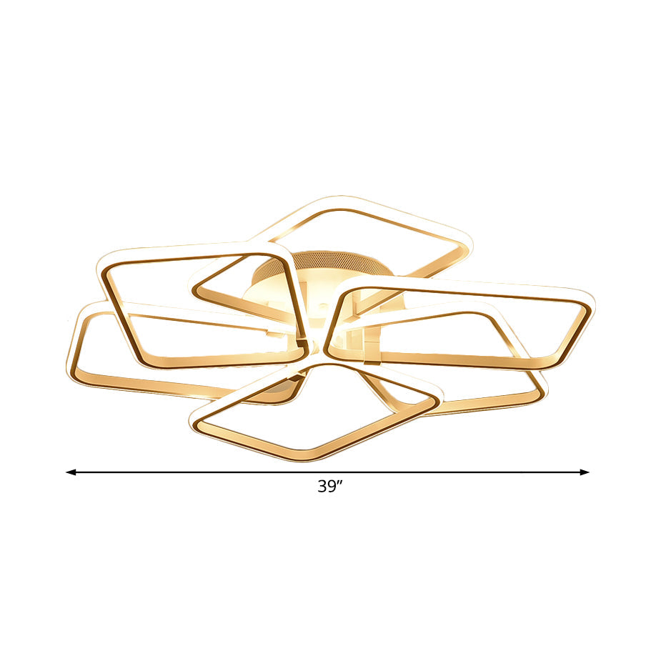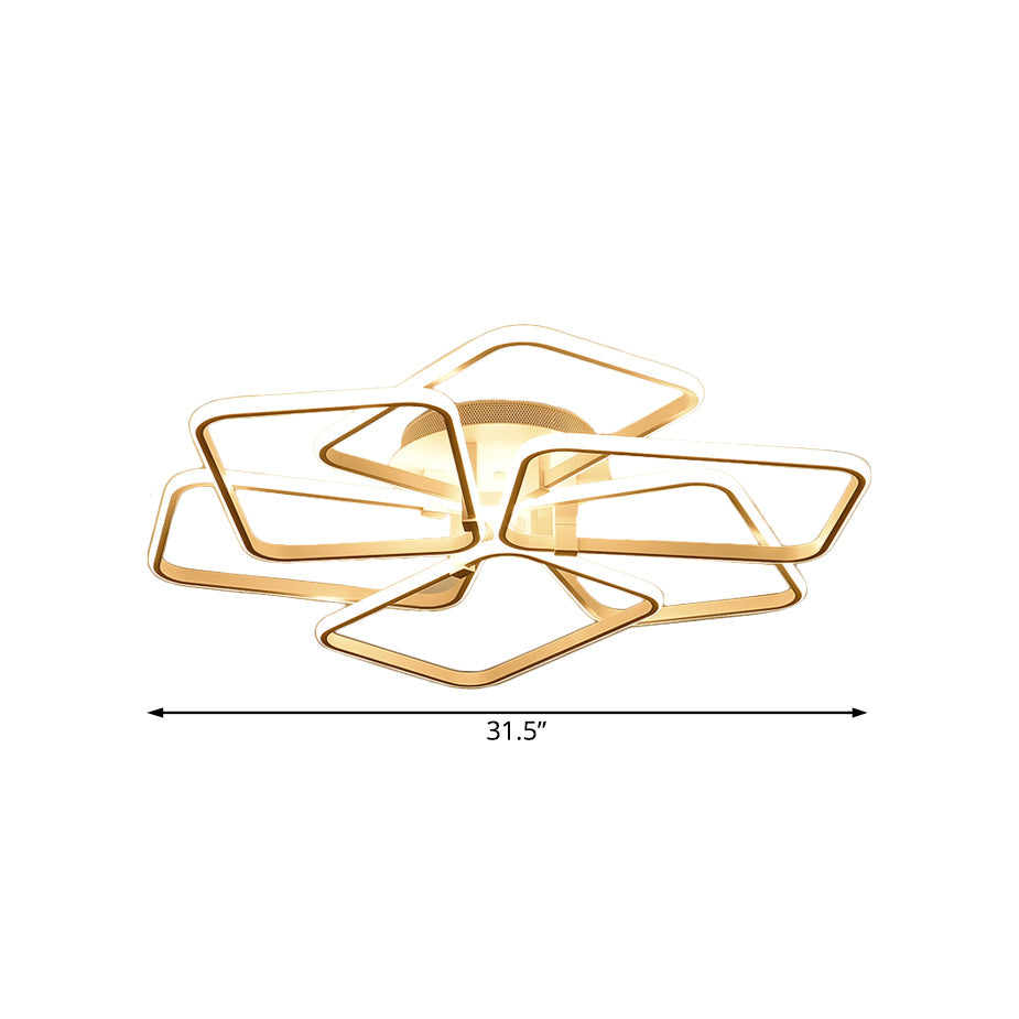 Modernist White Led Acrylic Semi Flush Lighting: 6 Rectangular Rings 31.5/39 Wide / 31.5