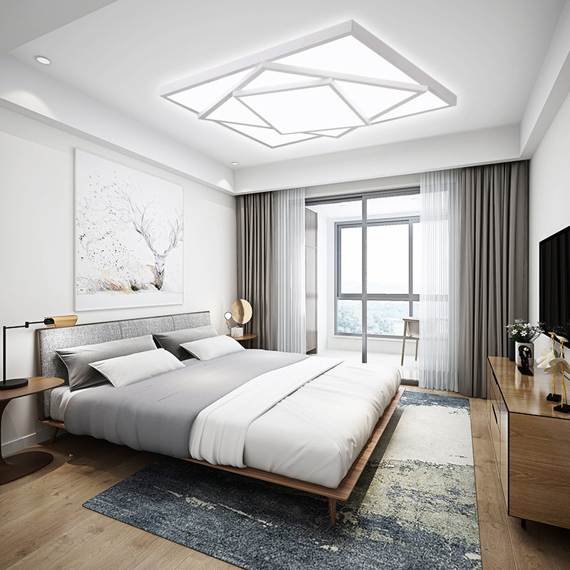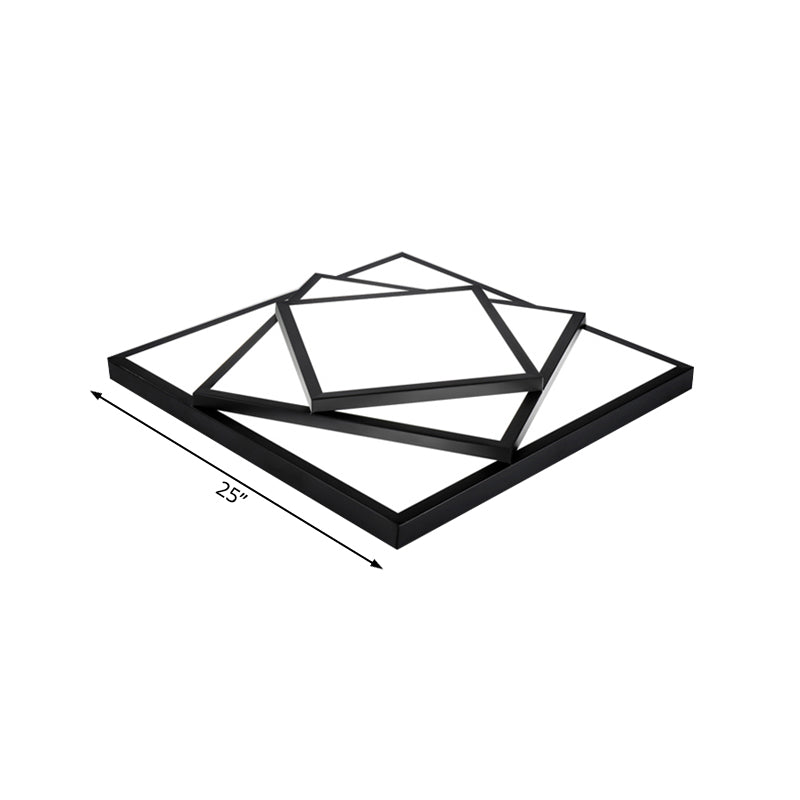 Plafonnier LED moderne en métal pour salon - Noir/blanc, rectangulaire/carré, 16"/19,5"/25" de large