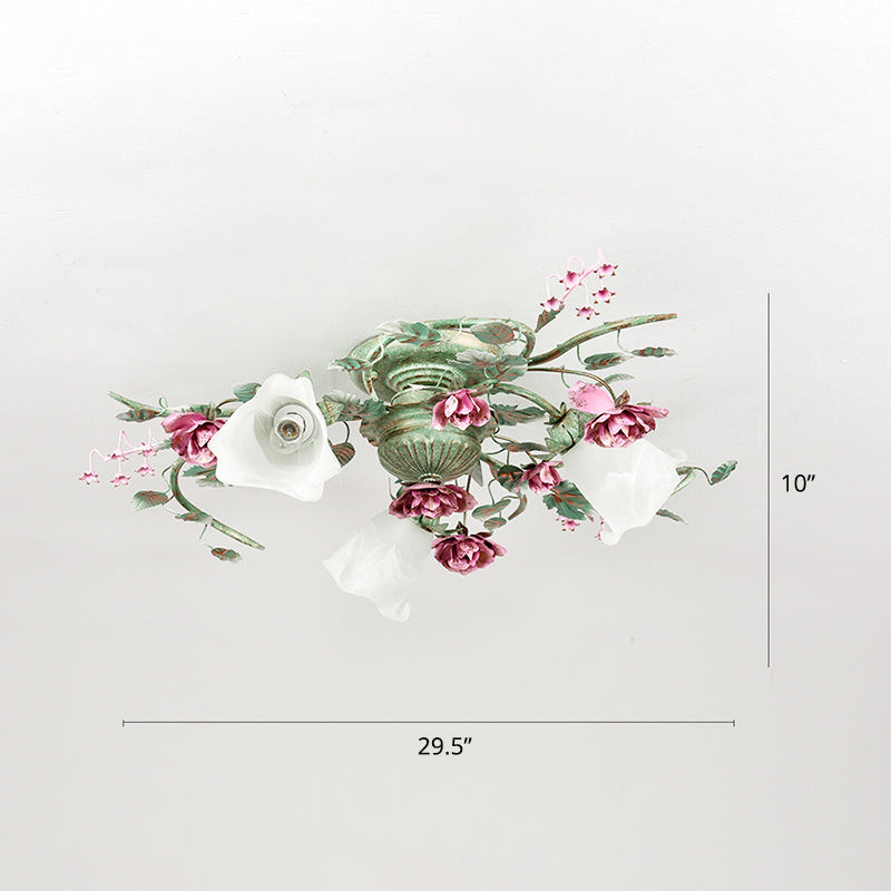 Plafonnier en verre opalin à motif de fleurs de campagne avec finition turquoise - Montage semi-encastré - 3 / Turquoise est en rupture de stock et sera expédié dès qu’il sera de retour en stock.