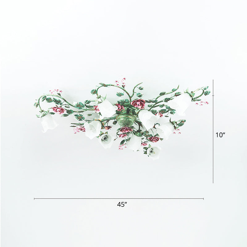 Plafonnier en verre opalin à motif de fleurs de campagne avec finition turquoise - Montage semi-encastré