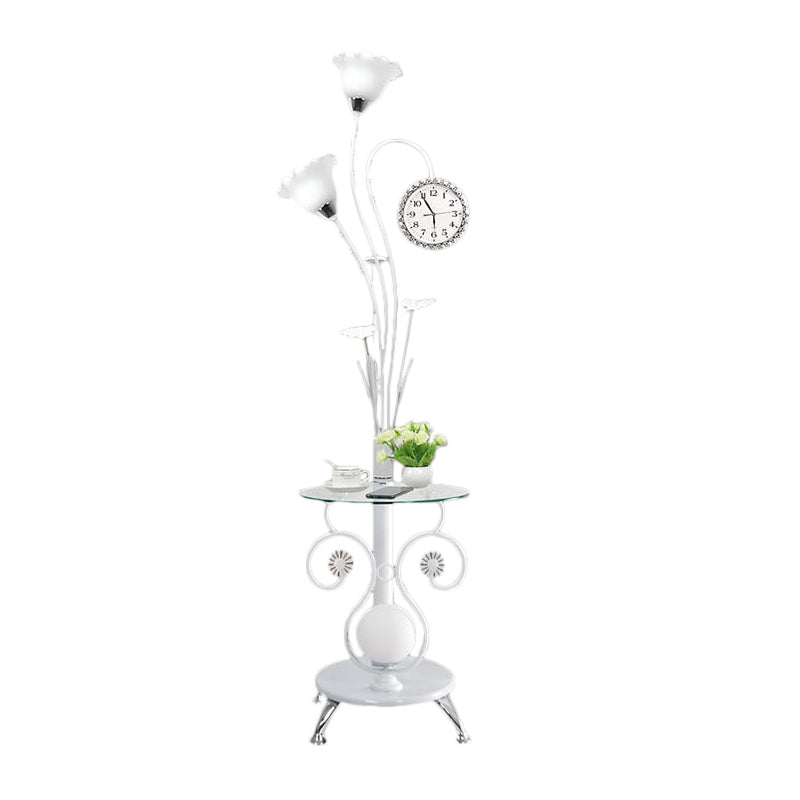 Rural Style Tree Shaped 2-Head Floor Lamp - Black/White Metallic Light For Bedroom White