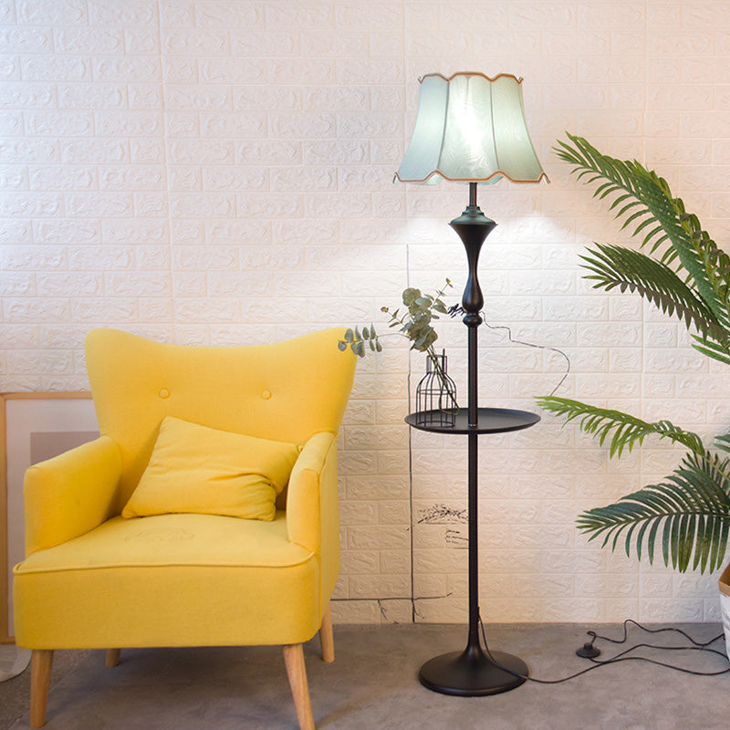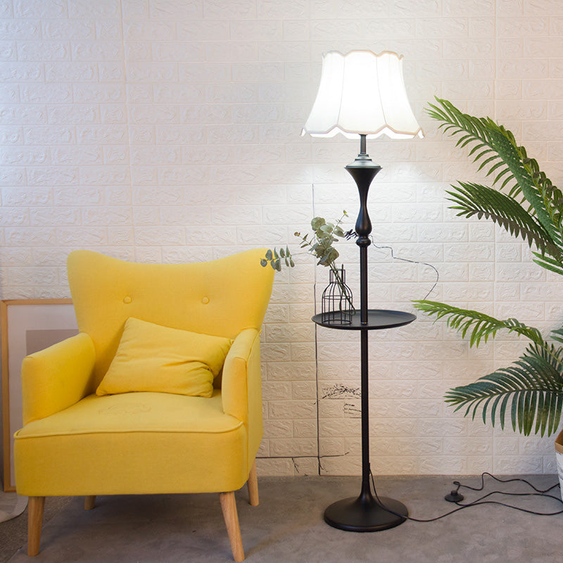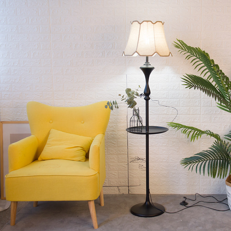 Lampadaire traditionnel en tissu en forme de cloche avec bordure festonnée pour salon - Lampe sur pied à une ampoule