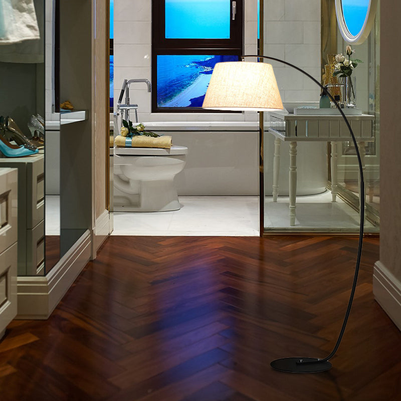 Lampadaire LED conique moderne avec bras en arc en blanc/noir