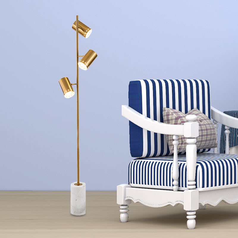 Lampadaire à colonne dorée - Design élégant avec 3 ampoules - Lampe de lecture pour chambre à coucher