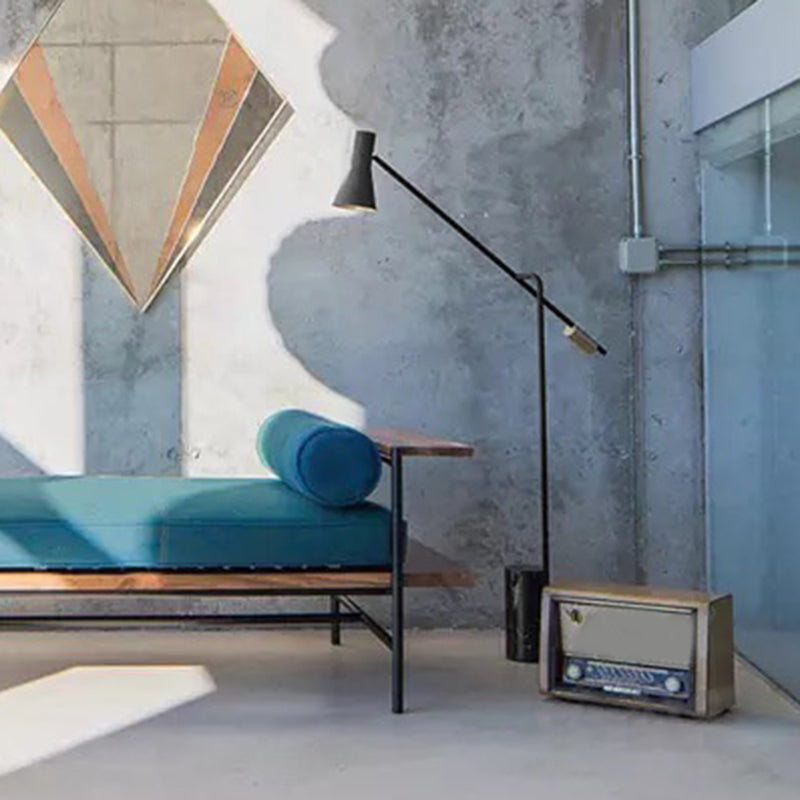 Lampadaire Cylindrique en Marbre: Lampadaire LED Noir avec Abat-Jour Lampe de Poche pour Salon