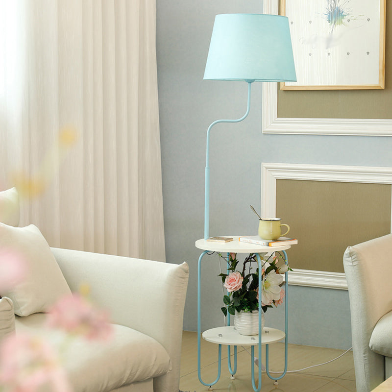 Modernist Drum Standing Fabric Floor Light With Tray - 1 Living Room Lighting Blue / A