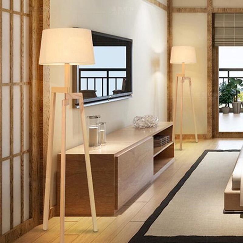Lampadaire trépied en bois moderne avec abat-jour en tissu - Design simple et élégant