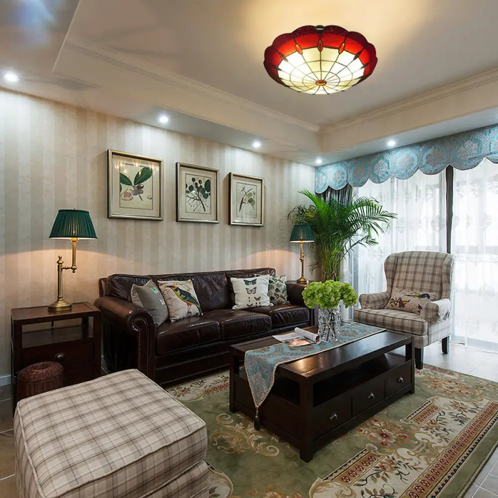 Plafonnier de chambre à coucher de style Tiffany 12"/16"/19,5" W Abat-jour en forme de dôme Montage encastré avec décoration de bijoux rouges