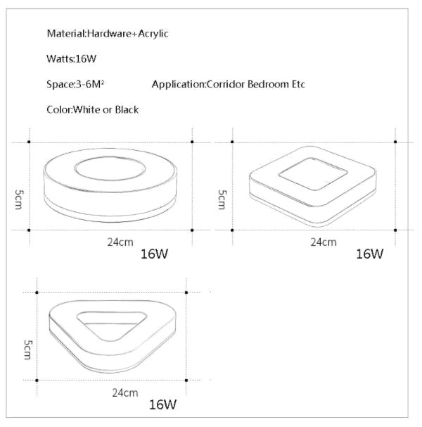 Lustre LED moderne de diamètre 240mm pour le lustre Led carré/rond/Triangle noir ou blanc de chambre à coucher de couloir de houx