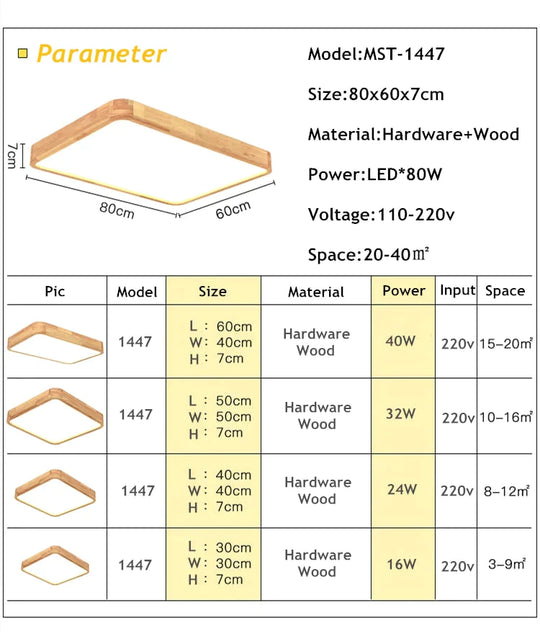 Nordic Simple Modern Oak Wood Ceiling Lamp Ultra Thin Led Lights