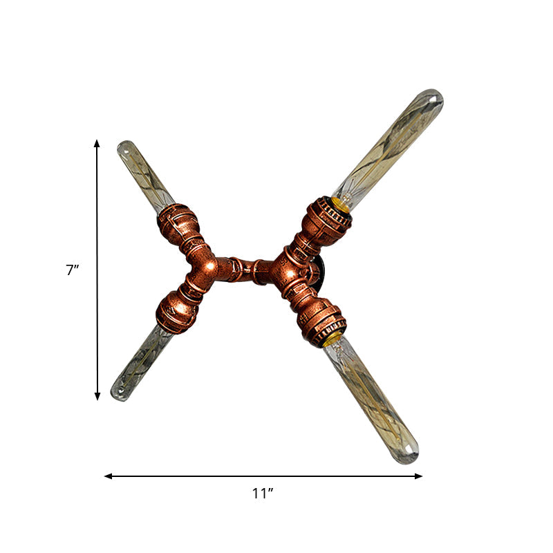 Rustic Weathered Copper Wall Sconce Lamp - Expose Bulb With Pipe Design 2/3/4 Heads Wrought Iron 4 /
