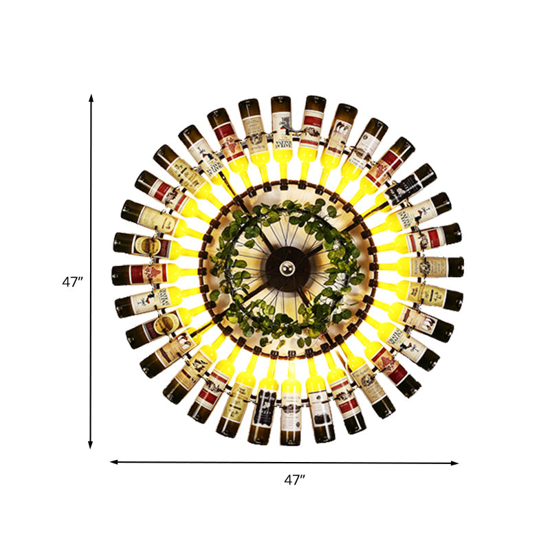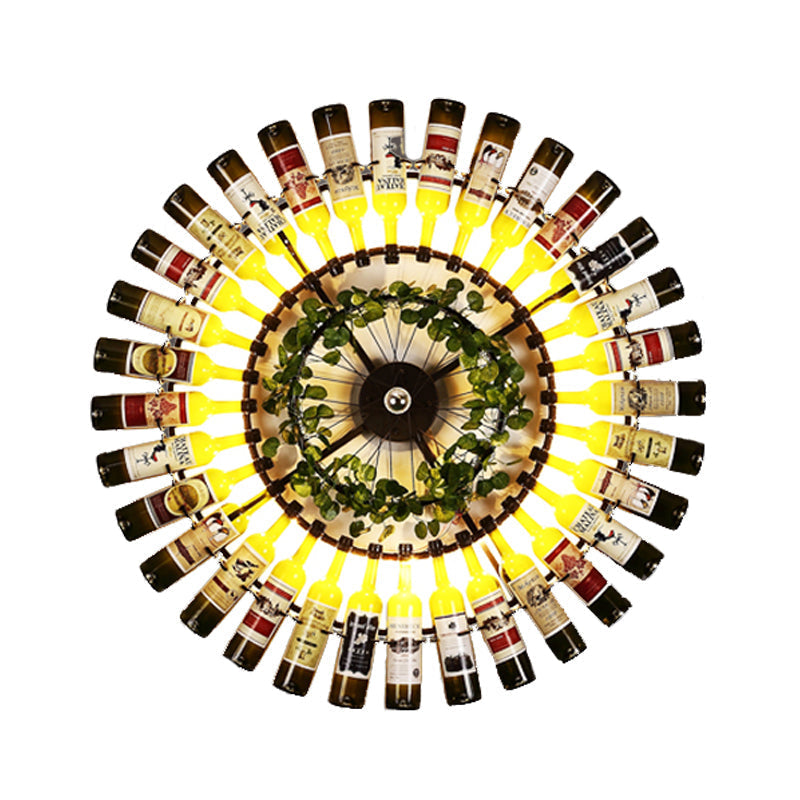 Applique Murale LED Bouteille de Vin en Métal Antique Noir avec Décor de Plantes - Applique Murale 1 Lumière