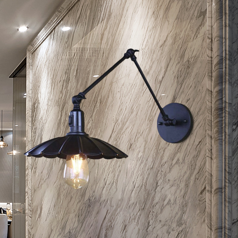 Vintage Black/White Scalloped Wall Sconce With Swing Arm - Stylish Metal Design For Living Room