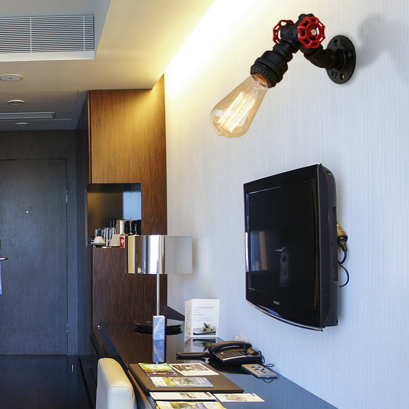 Applique murale rustique avec valve : éclairage de ferme élégant à 1 ampoule en noir pour salle à manger