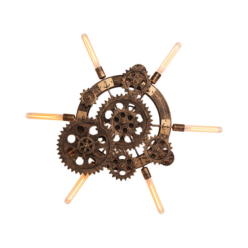 Applique murale Iron Gear de style ferme - Applique de salon à 6 lumières en laiton avec ampoule ouverte