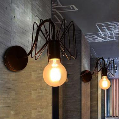 Applique Murale Araignée Vintage - Bras en Col de Cygne, Applique Murale en Fer à 1 Tête, Noir - Parfait pour l'éclairage de Couloir