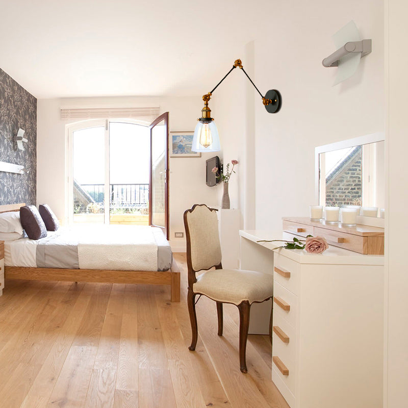 Applique murale en verre transparent antique conique à côté de l'applique - Applique murale à bras oscillant 1 lumière (noir/argent/laiton)