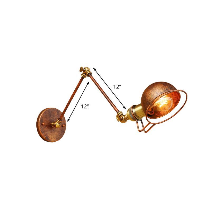 Vintage Industrial Bowl Wall Lamp With Swing Arm - 1-Light Iron Sconce Light Fixture In Black/Brass