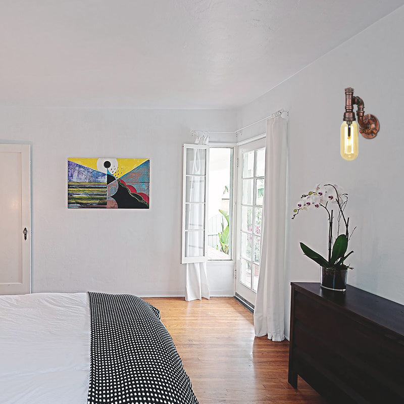 Applique murale capsule en cuivre patiné rustique - Applique murale pour chambre à coucher à 1 tête (9 "/ 10,5" / 12 "de haut) avec design de tuyau