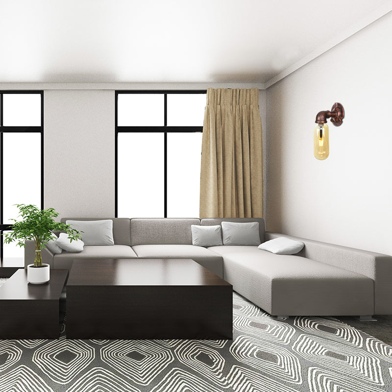 Rustic Weathered Copper Capsule Wall Light - 1 Head Bedroom Sconce Lamp (9/10.5/12 High) With Pipe