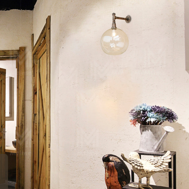 Support mural en bronze avec abat-jour en verre - Luminaire de style antique avec tuyau en fer forgé - 1 tête, 8"/12" de large