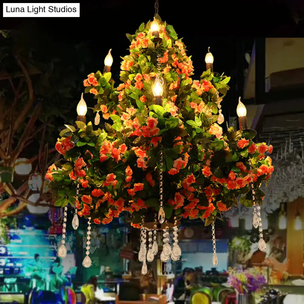 Lustre industriel en métal avec accents de cristal et bougies à DEL