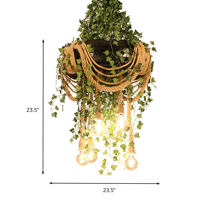 Le lustre à ampoule nue noire vintage en corde de chanvre à 6 lumières pour plantes de restaurant est un magnifique luminaire rustique qui serait parfait pour un restaurant, une cabane ou tout autre cadre rustique. Cette lumière est faite de corde de chanvre et a une ampoule nue. Il a un style simple et industriel et aurait fière allure dans une palette de couleurs noires ou sombres. Ce luminaire a une tension de 220-240V et un culot d'ampoule E26/E27. Il peut utiliser des ampoules LED, incandescentes ou fluorescentes. Cette lampe mesure 23,5 pouces de hauteur et 23,5 pouces de largeur. Il a une conception à 1 niveau et comprend 6 lumières.