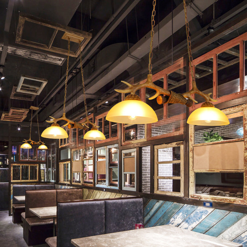 Suspension rétro en forme de dôme avec verre beige et corne de cerf décorative - Lot de 2
