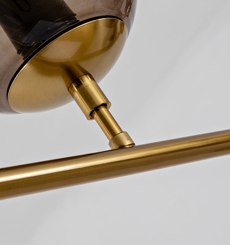 Ce plafonnier en verre sphérique à 6 lampes moderne et élégant est parfait pour votre salle à manger ! Ce luminaire est doté d'un abat-jour en verre transparent et d'une forme sphérique, émanant d'une structure métallique finie avec une teinte dorée. La taille de cette suspension moderne est de 25 pouces et plus, ce qui la rend vraiment grandiose dans n'importe quel décor de salle à manger. Il comporte plusieurs composants ; le luminaire a une hauteur de 18 pouces et la longueur de la chaîne/du cordon est généreuse de 47 pouces. L'abat-jour lui-même mesure 6 pouces de largeur, 6 pouces de hauteur et est fabriqué en verre transparent de couleur gris fumé. La largeur de la verrière est de 5 pouces et l'abat-jour est de type directionnel ambiant. Cette suspension moderne a une forme à un niveau et il faut noter que l'ampoule n'est pas incluse.