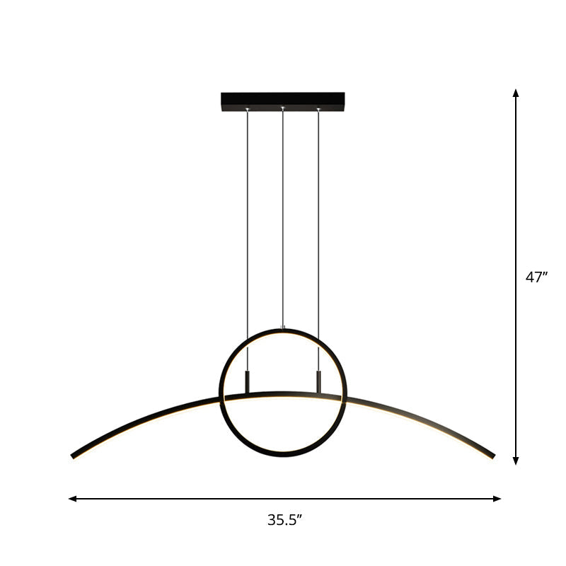 Lustre moderne en arc en aluminium noir : lampe d'îlot à LED avec design annelé