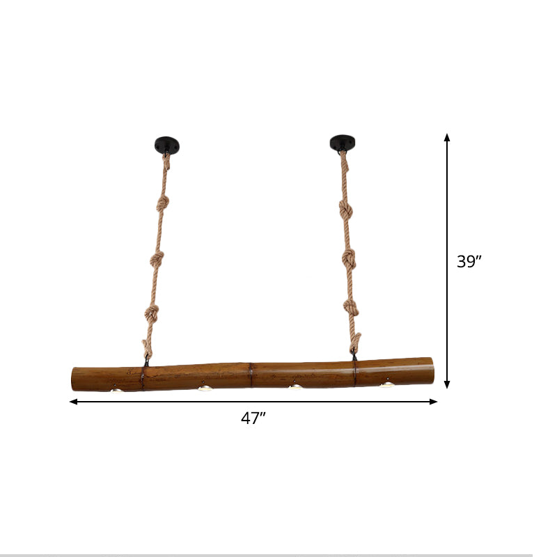 Lampe suspendue en tube de bambou pour îlot - Lampe suspendue de ferme avec 4 ampoules, jaune et marron, corde incluse
