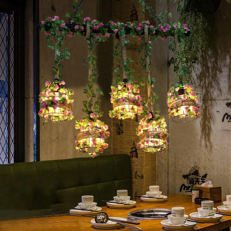 Luminaire industriel en métal noir à 5 têtes pour restaurants et usines