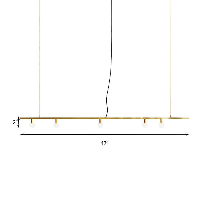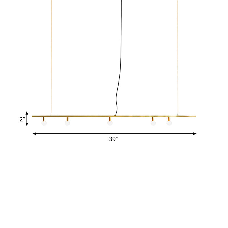 Luminaire suspendu linéaire doré à 5 ampoules en métal nordique pour salle à manger - 39"/47" de large